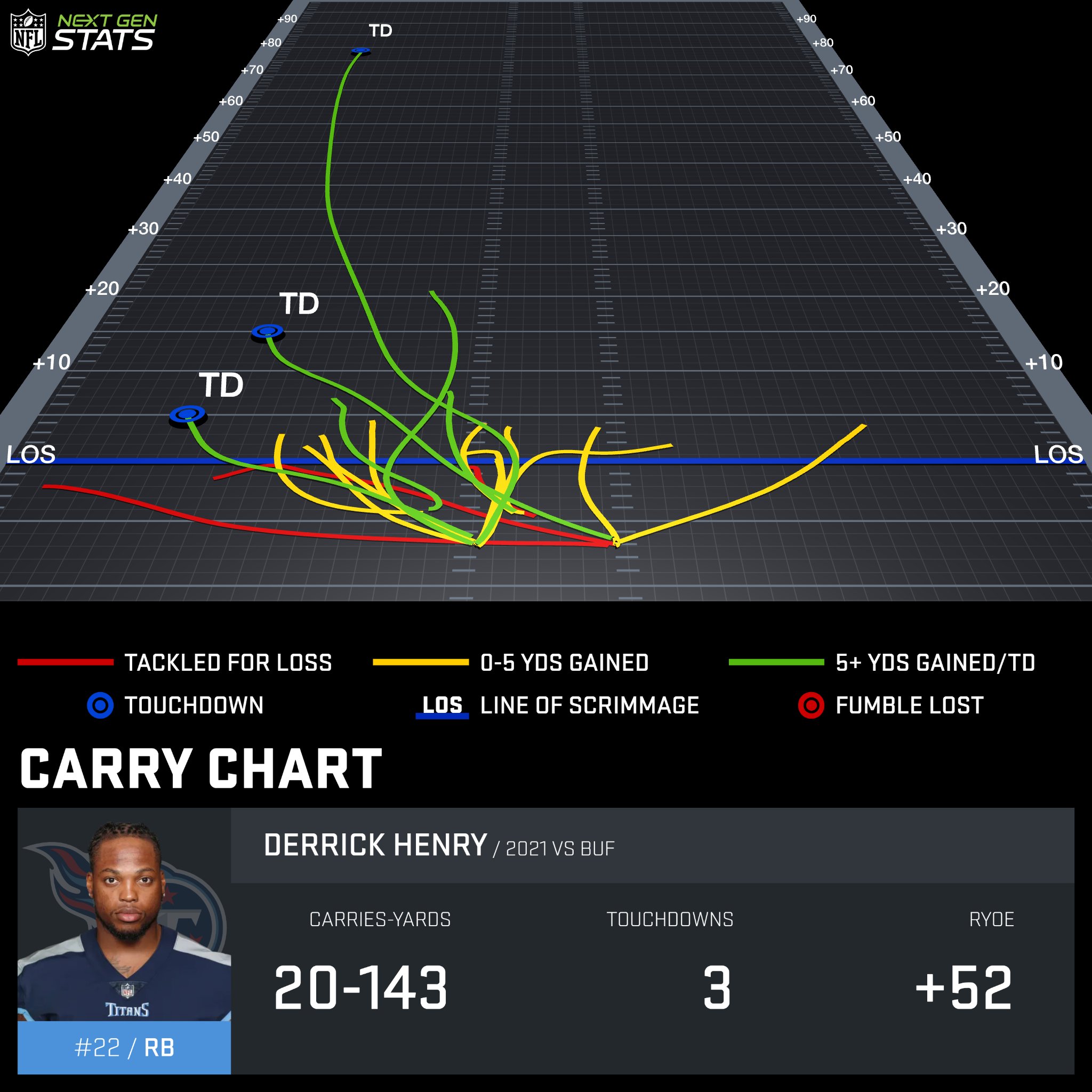 Derrick Henry's 76 yard touchdown kept Tennessee in the game. Despite the Bills largely dominating the first half, the Titans went into halftime trailing by just 3 and totaling just 2 first downs and 165 total yards.